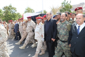 نائبا رئيس الوزراء ورئيس الاركان وقيادات الدولة يشيعون جثمان الشهيد اللواء الزنداني...