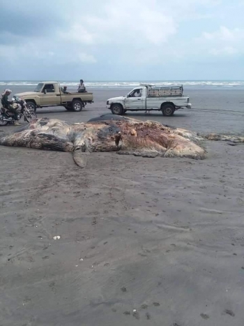 شاهد بالصور : كائن عملاق وغريب على ساحل أبين بالعاصمة المؤقتة...