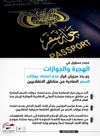 مصدر مسؤول يجدد سريان قرار عدم اعتماد جوازات السفر الصادرة من مناطق...
