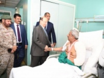 أثناء رحلة علاجهما..هادي يزور محافظ لحج ومدير الكلية العسكرية...