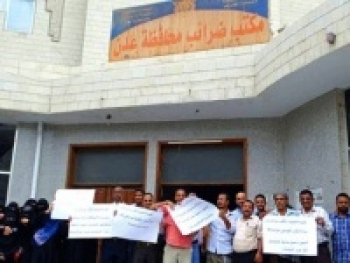 موظفو وعمال مكتب ضرائب العاصمة عدن يضربون عن...