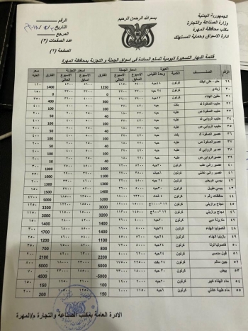شاهد بالوثائق .. السلطة المحلية بالمهرة تتخذ اجراءات صارمة بحق المتلاعبين بالاسعار وتعمم تسعيرة موحدة في كافة المديريات...