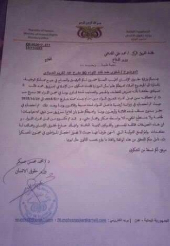 حقوق الإنسان توجه رسالة شديدة اللهجة لوزير الدفاع للتحقيق في اعتقال الإعلامي الصيادي من قبل قائد اللواء...