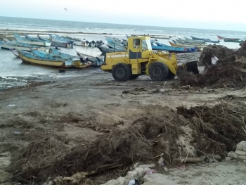 شاهد بالصور .. هيئة المصائد السمكية بـ«المهرة» تنفذ حملة لإزالة مخلفات «اعصار لبان» من شواطئ المحافظة...