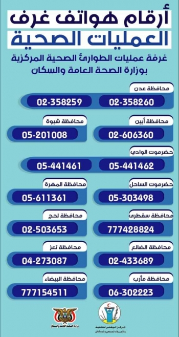 عاجل .. الصحة اليمنية تدعو لفرض حظر التجوال بعدن وتنفي تلقي أي مساعدات من البنك الدولي لمواجهة...