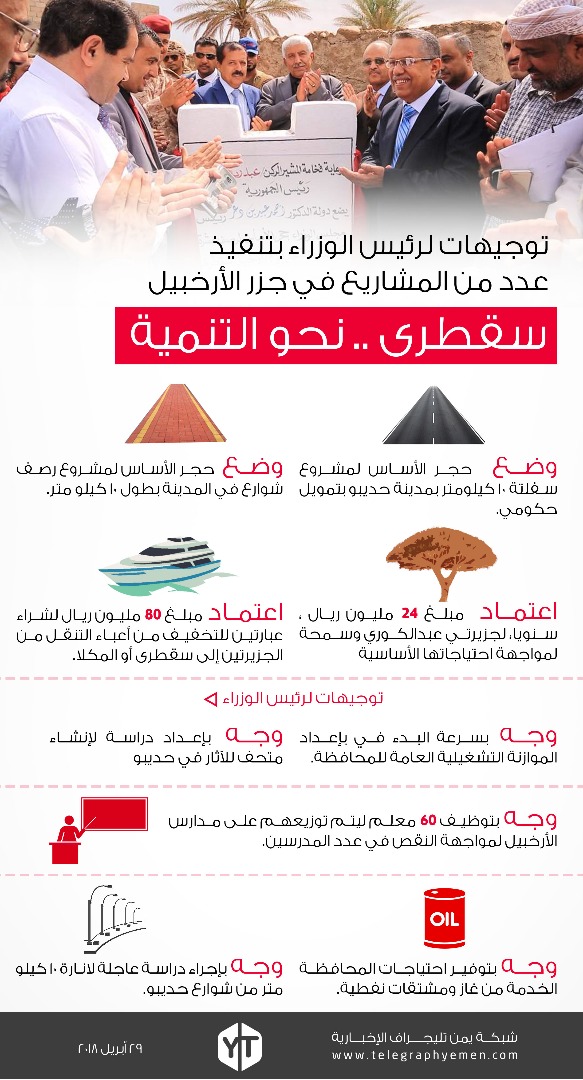 انفوجرافك يوضح اهم انجازات زيارة رئيس الحكومة الى سقطرى