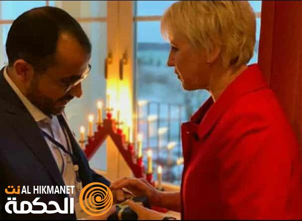 حصل «الحكمة نت» على صورة تظهر المتحدث الرسمي لمليشيا الحوثي ورئيس وفدها المفاوض المدعو محمد عبدالسلام فليته مع وزيرة الخارجية السويدية «مارغوت فالستروم» وهو يقدم لها هدية ثمينة «رشوة».