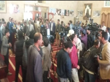 أقامت جماعة الحوثي الإنقلابية مؤتمراً صحفياً في صالة التشريفات في مطار صنعاء الدولي قبل دقائق من هبوط طائرة المبعوث الأممي إلى اليمن مارتن غريفيث.