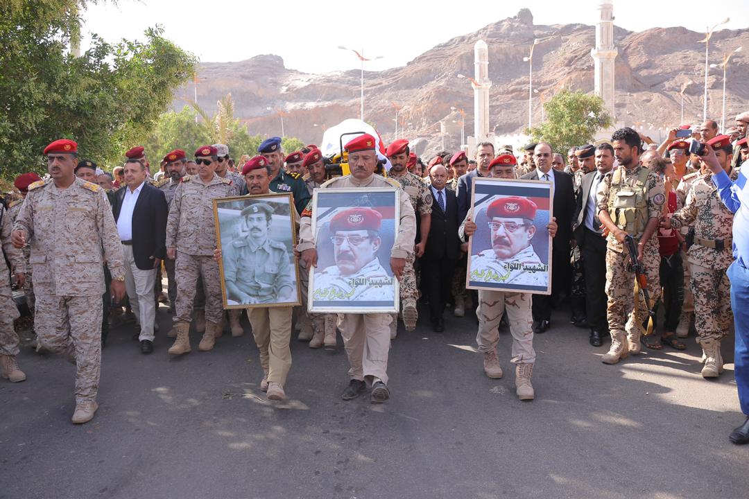 وأشاد الدكتور معين، بمناقب الشهيد واسهاماته الجليلة في مختلف مراحل حياته العسكرية، الذي باستشهاده خسر الوطن أحد اكفأ قيادات القوات المسلحة التي عُرف على الدوام بمهنيته ونشاطه وانضباطه ومعرفته الواسعة وإلمامه بتخصصاته العسكرية ووهب جُل حياته لخدمة الوطن والقضايا الوطنية.