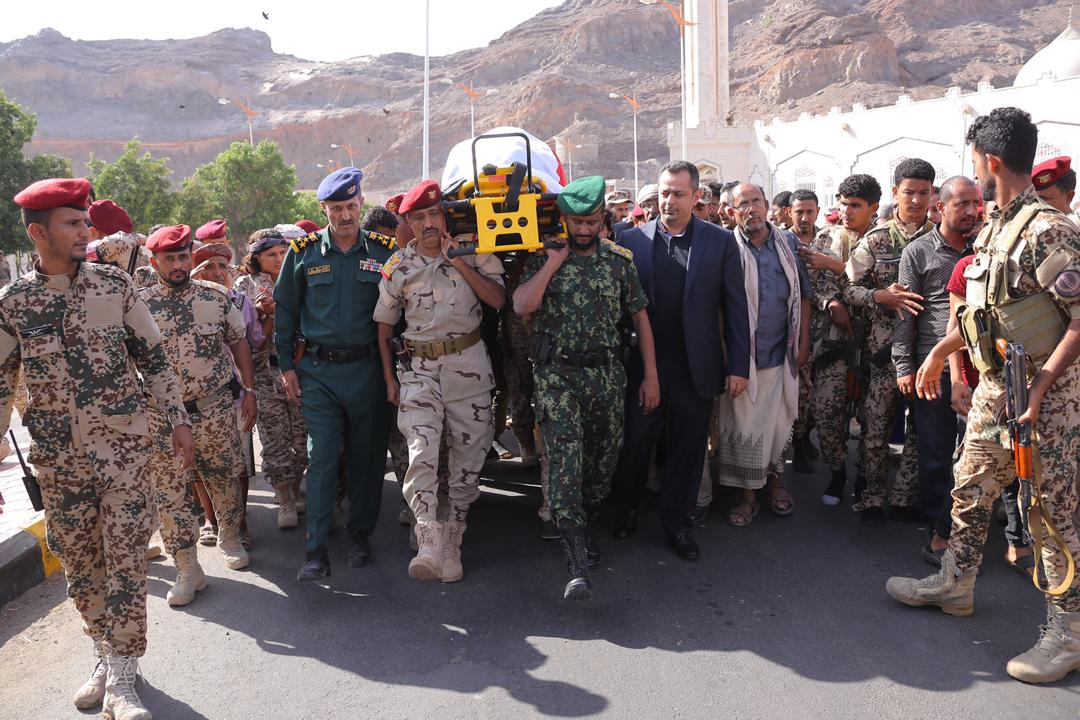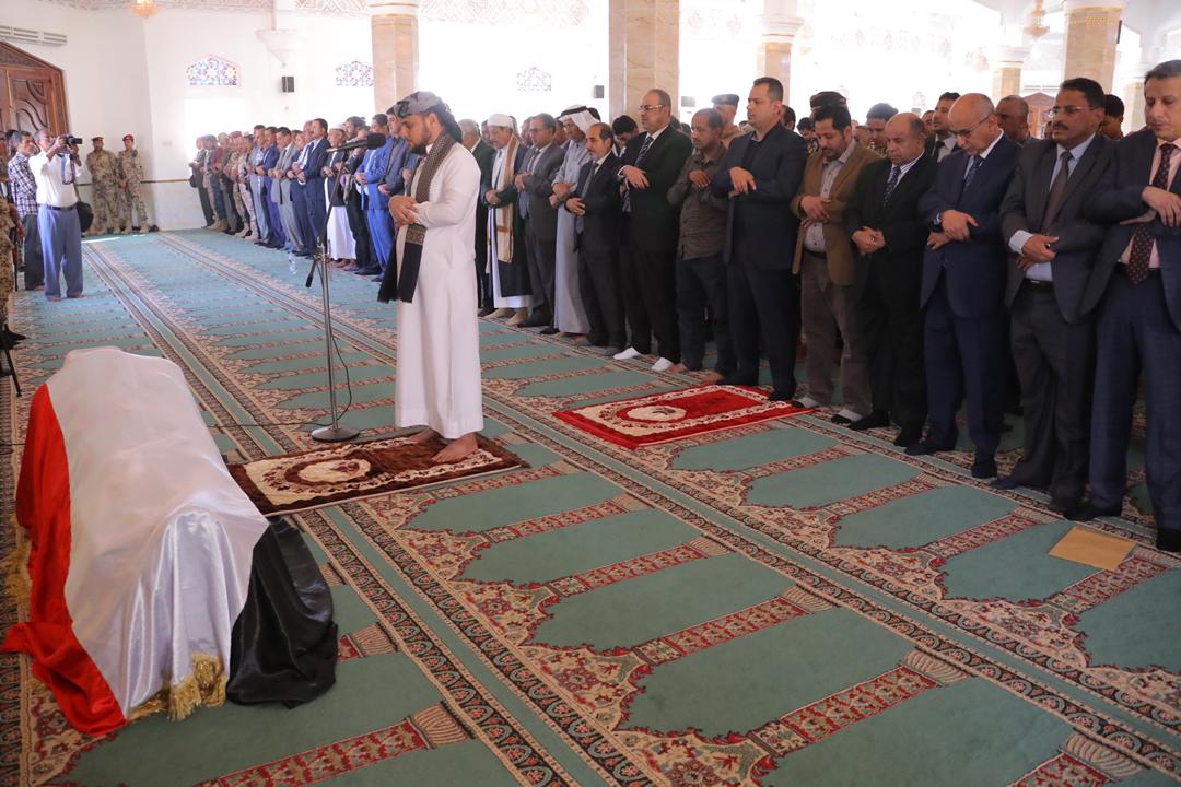 أدى رئيس مجلس الوزراء الدكتور معين عبدالملك، اليوم، ومعه نائبيه ووزراء الحكومة وعدد من قيادات الدولة، بجامع حقات بالعاصمة المؤقتة عدن صلاة الجنازة على جثمان الشهيد رئيس هيئة الاستخبارات والاستطلاع اللواء الركن محمد صالح طماح، الذي توفي، أمس الأحد، متأثراً بإصابته التي تعرض لها في الحادثة الإجرامية التي استهدفت قاعدة العند الجوية العسكرية، ونفذتها ميليشيا الحوثي الانقلابية الإيرانية باستخدام طائرة مسيّرة.