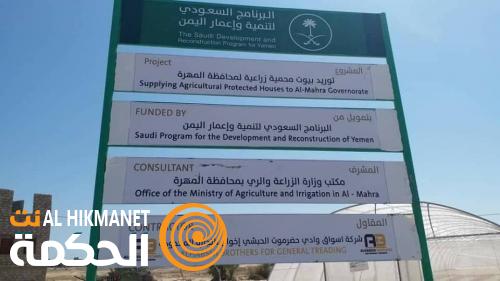 بدوره أوضح مدير البرنامج السعودي لتنمية وإعمار اليمن فرع المهرة عبدالهادي أن تدشين مشروع البيوت الزراعية المحمية يأتي ضمن مبادرات البرنامج السعودي للتنمية والإعمار لدعم القطاع الزراعي والمزارعين عقب إعصار لبان.