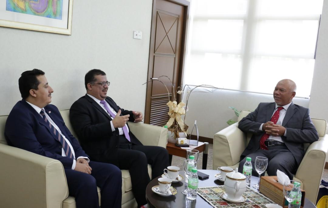 بحث سفير اليمن لدى كوالالمبور الدكتور عادل باحميد اليوم مع مدير المعهد الدبلوماسي والعلاقات الخارجية الماليزي محمد صدّيق التعاون المشترك بين وزارة الخارجية اليمنية والمعهد في مجال تأهيل الكوادر الدبلوماسية وإقامة الأنشطة المشتركة.