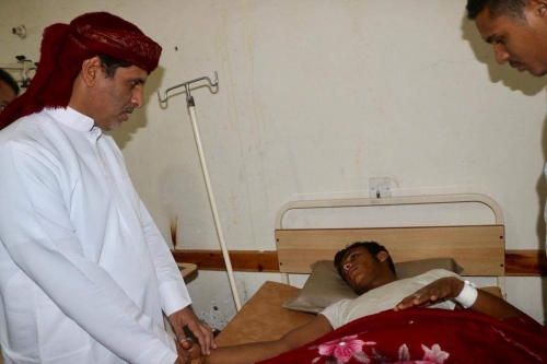 محافظ المهرة يزور مستشفى الغيضة للاطمئنان على صحة المصابين في اشتباكات حات(صور)