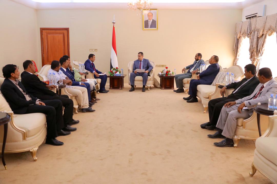 جاء ذلك خلال لقاء رئيس الوزراء، اليوم الاحد، في العاصمة المؤقتة عدن، محافظ ارخبيل سقطرى رمزي محروس، ومدراء عموم المكاتب التنفيذية بالأرخبيل، بحضور وزير الثروة السمكية فهد كفاين، ومدير مكتب رئيس الوزراء انيس باحارثة.