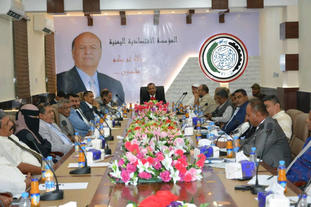 وأكد على أهمية تواصل العمل الدؤوب في سبيل استعادة كافة ممتلكات وأصول المؤسسة الاقتصادية، والوقوف بحزم أمام كل من تسول له نفسه العبث بها، منوهاً بأن المؤسسة ستتخذ كافة الإجراءات القانونية من أجل استعادة ما تم نهبه من مواردها وممتلكاتها، داعياً الجميع إلى العمل على تعزيز دور المؤسسة في تقديم خدماتها المختلفة للمواطنين بأسعار منافسة، كما دعا جميع الجهات والمؤسسات والمواطنين إلى عدم التعامل مع ما تسمى بالمؤسسة الاقتصادية في صنعاء الخاضعة بقوة السلاح لسيطرة ميليشيا جماعة الحوثي الانقلابية الموالية لإيران، وذلك بعد نقل مركز المؤسسة من صنعاء إلى عدن.