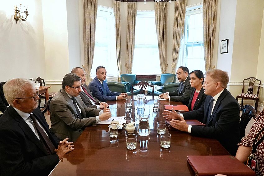 بحث رئيس مجلس الوزراء الدكتور أحمد عوض بن مبارك، اليوم، في العاصمة البريطانية لندن، مع وزير الدفاع البريطاني غرانت شابس، التطورات في اليمن والمنطقة، ومجالات الدعم والتعاون الثنائي في مجال الدفاع بين اليمن وبريطانيا.